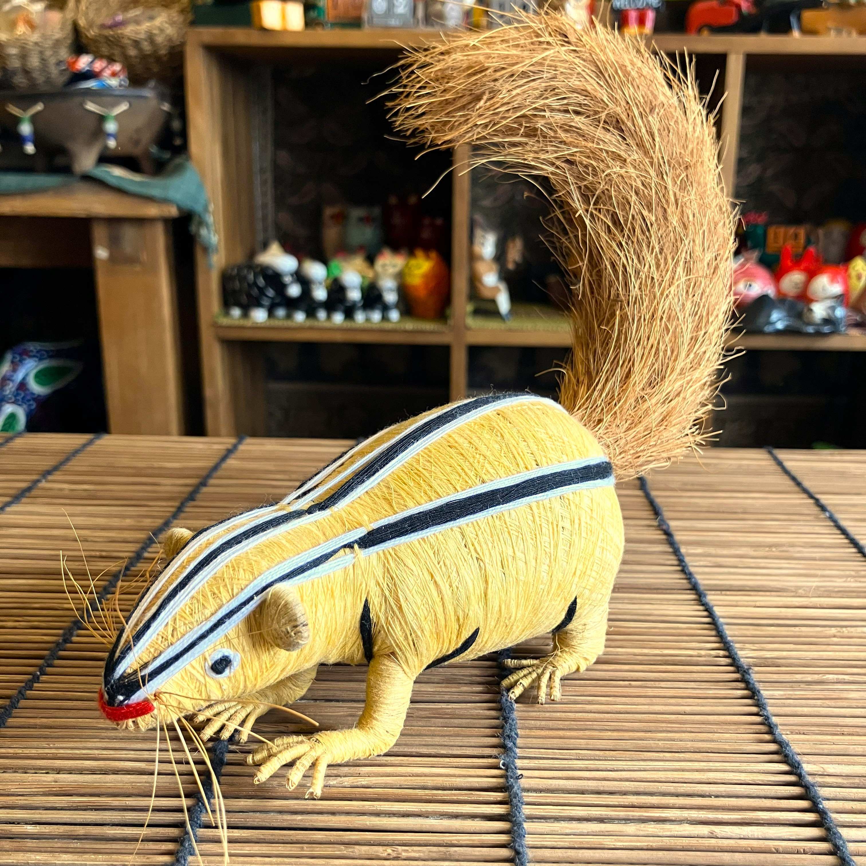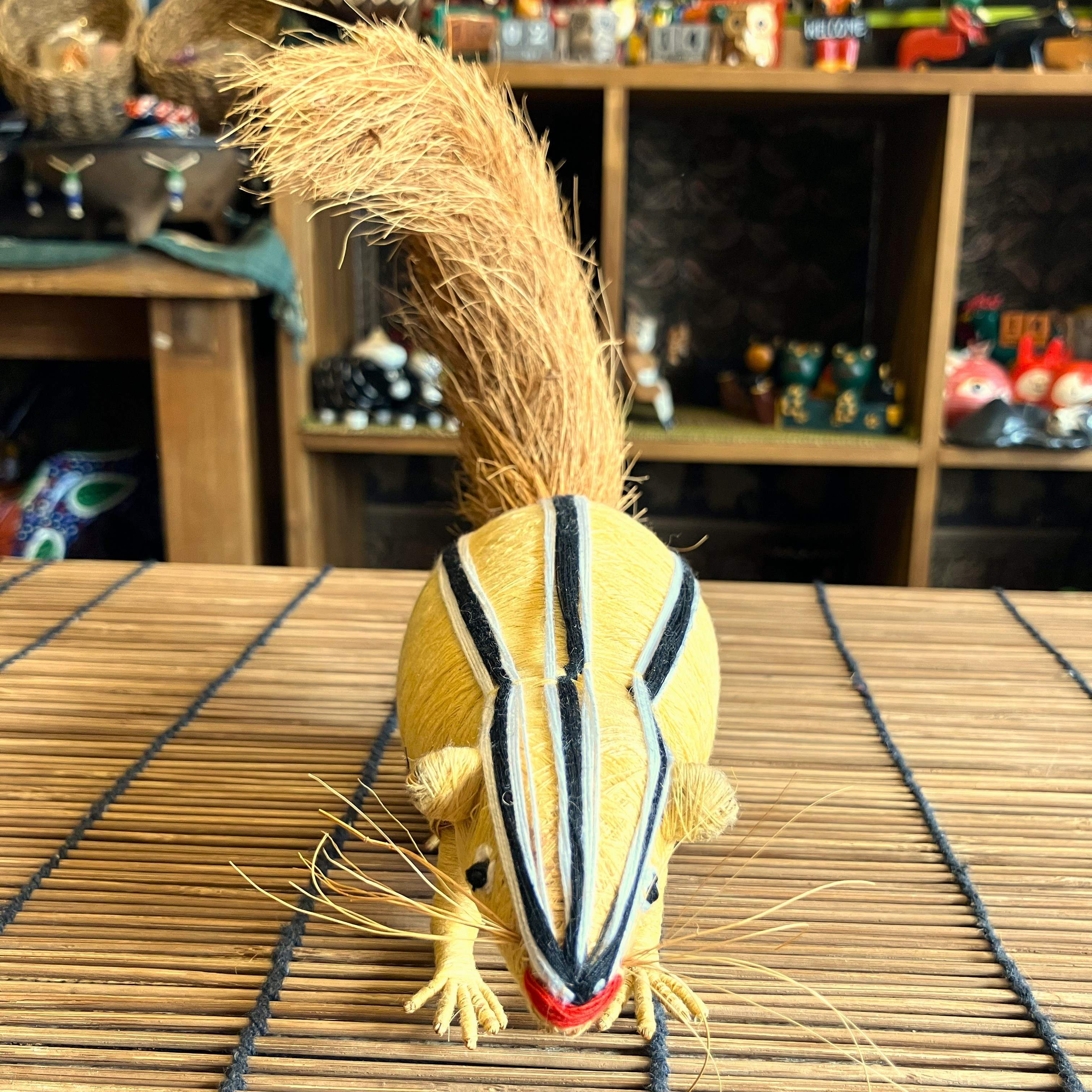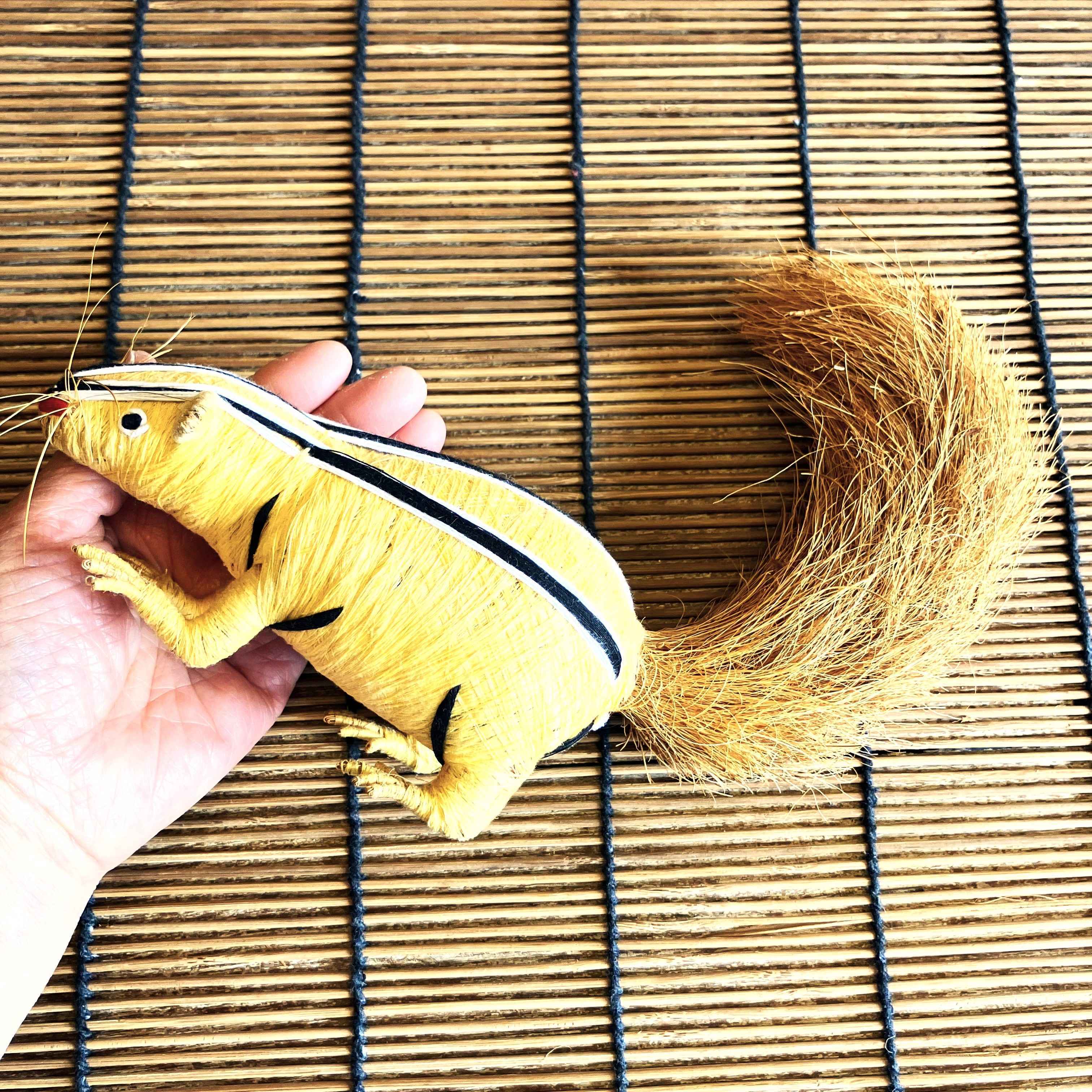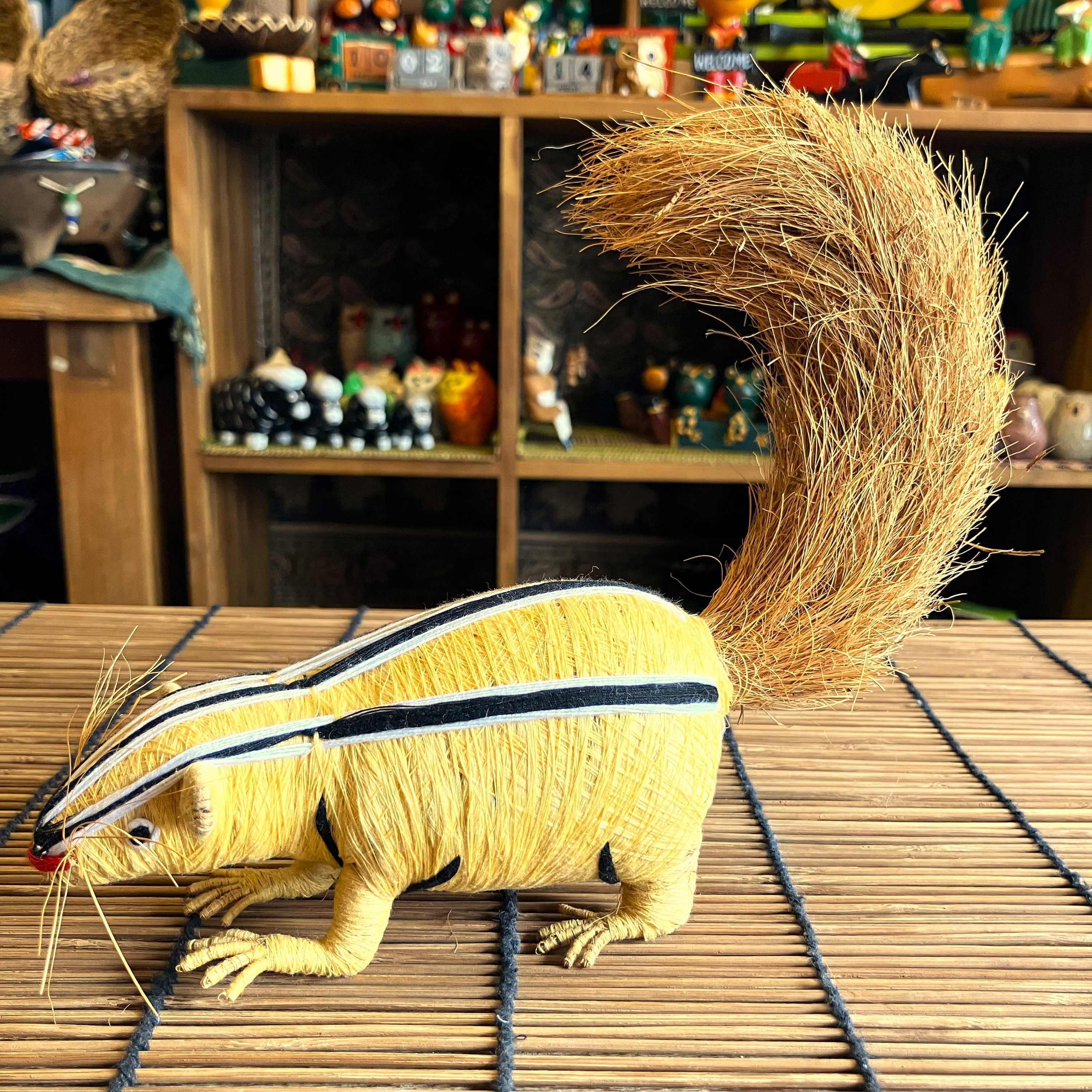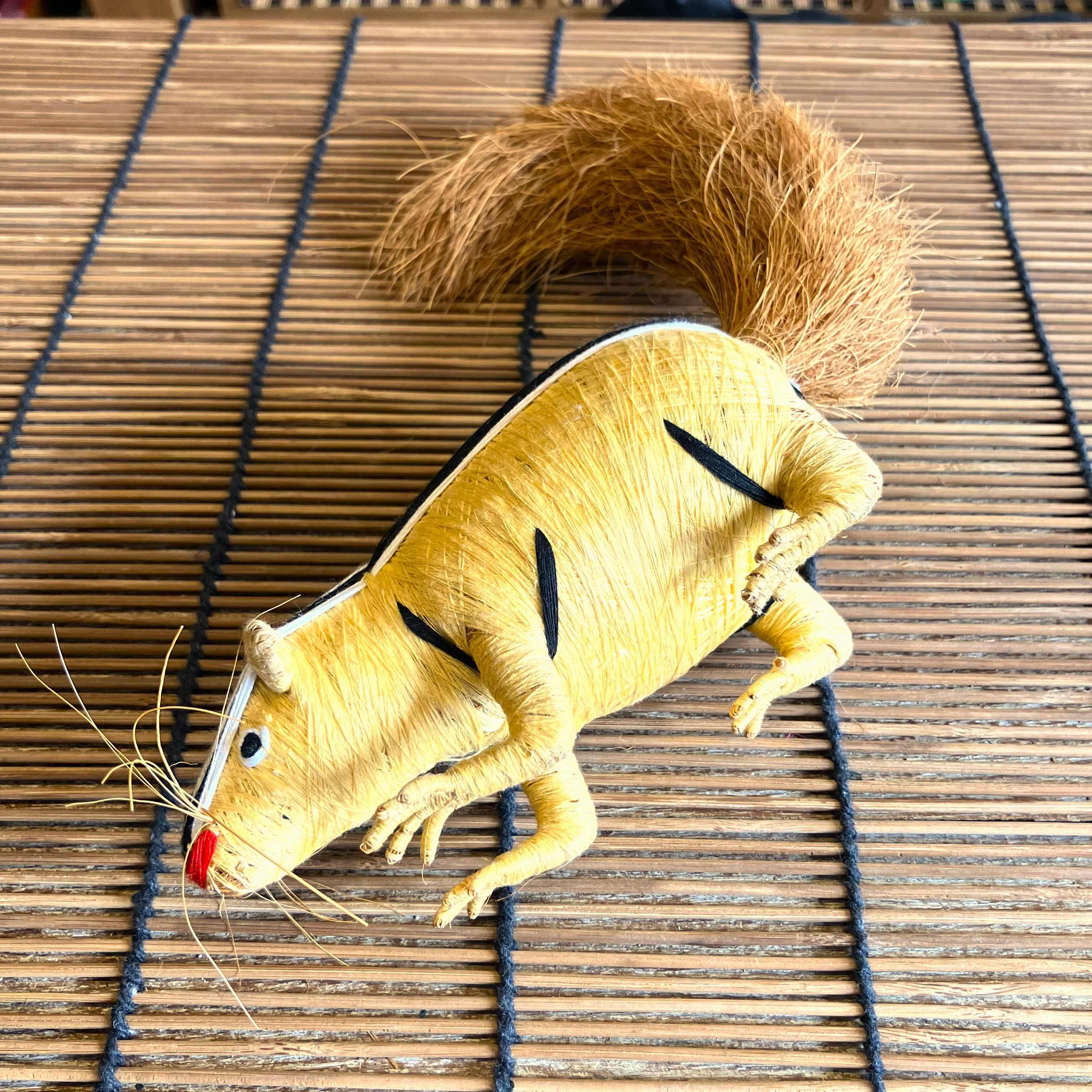 インド製の繊細で緻密なココナッツファイバーで手作りされたリスの置物です。