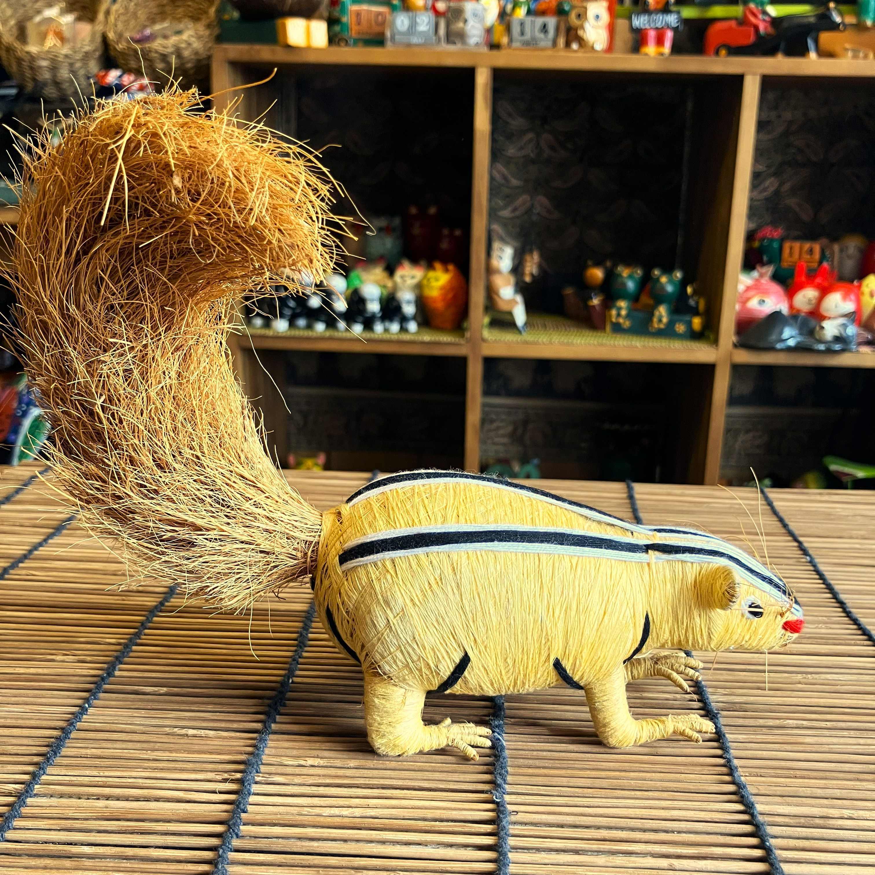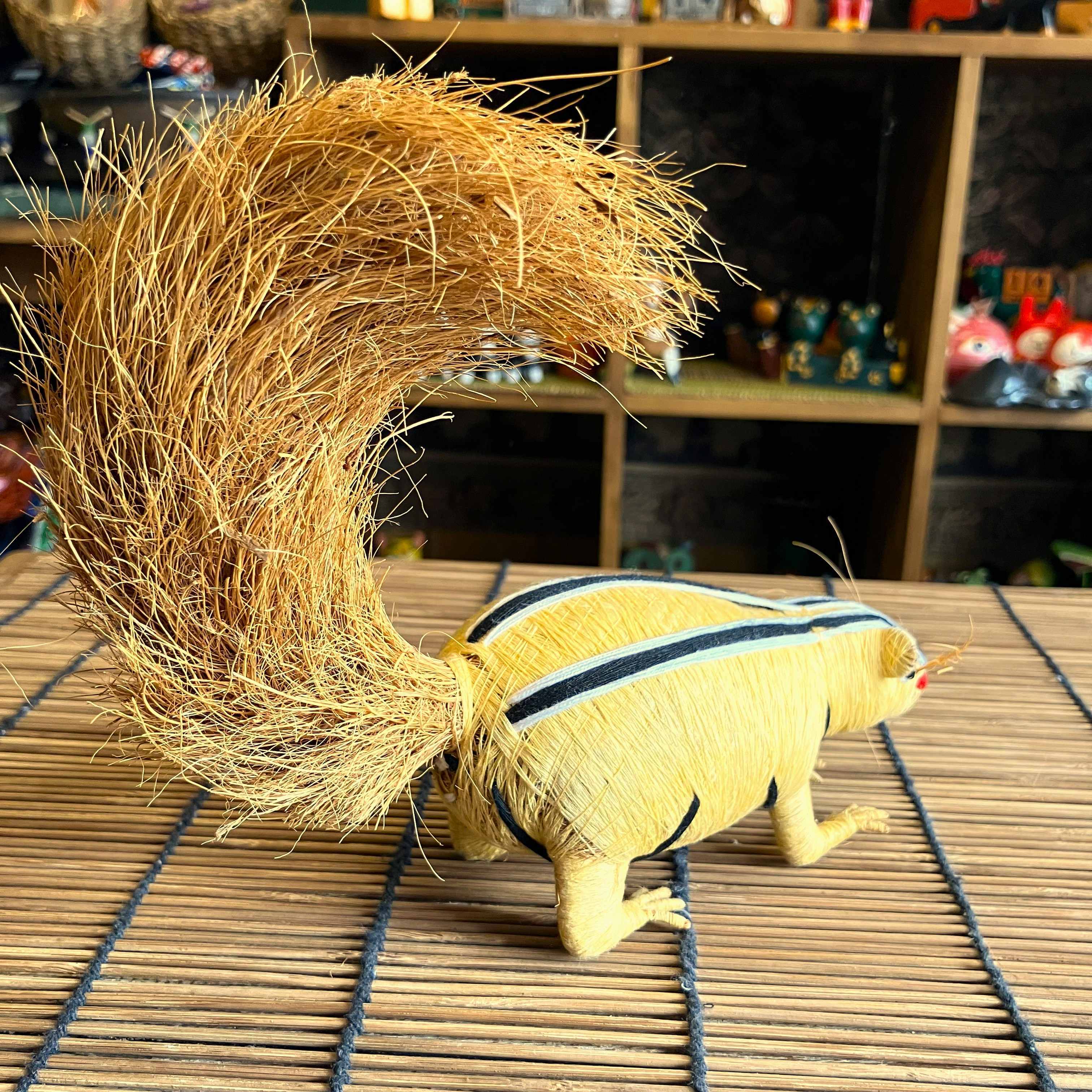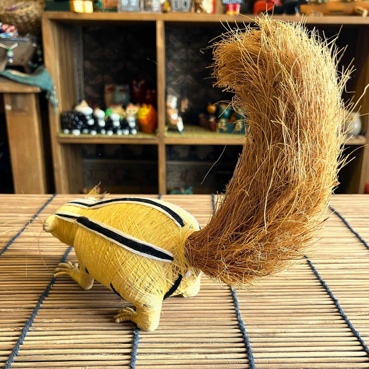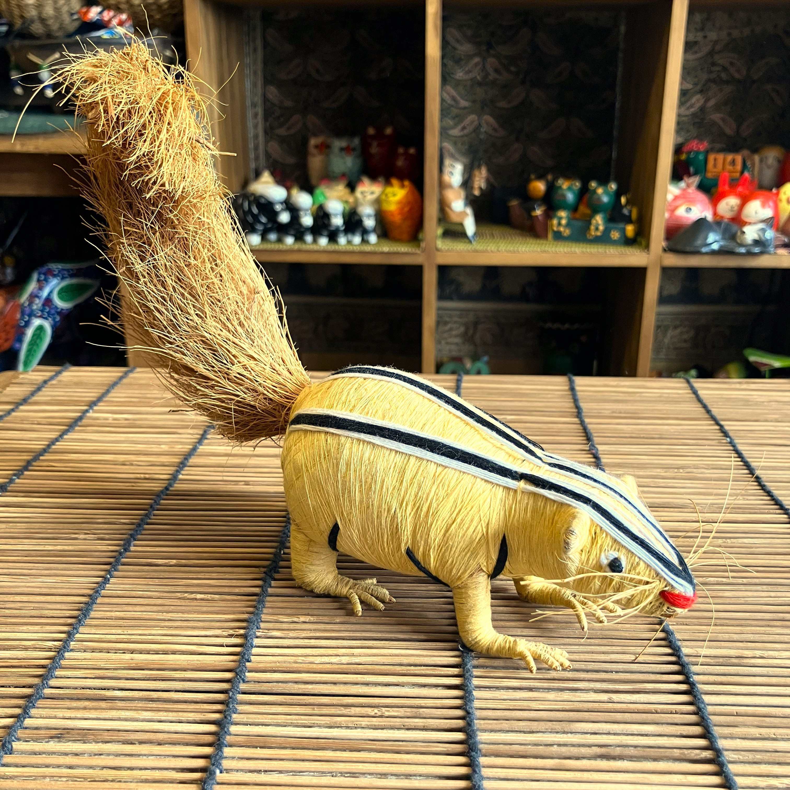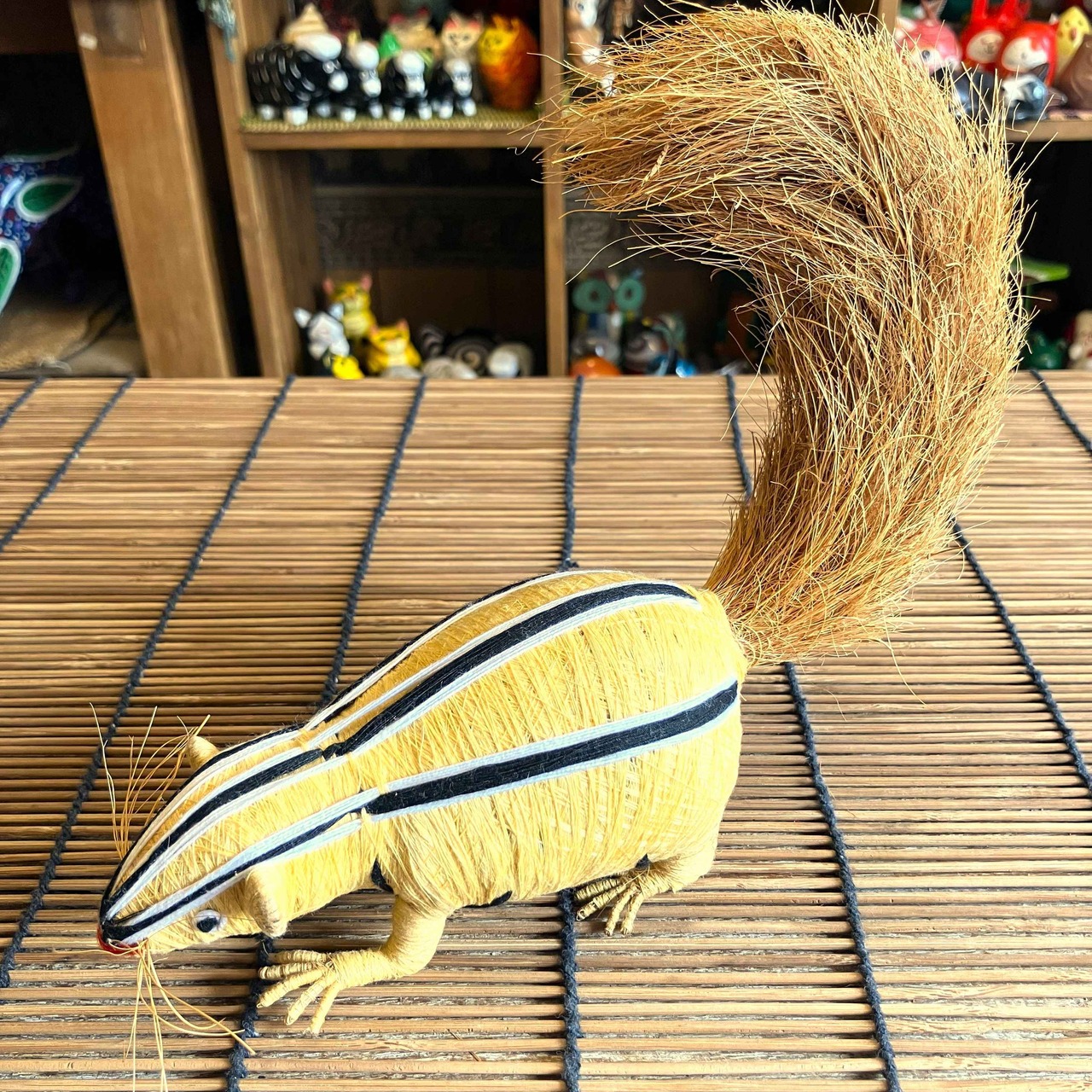 インド製の繊細で緻密なココナッツファイバーで手作りされたリスの置物です。