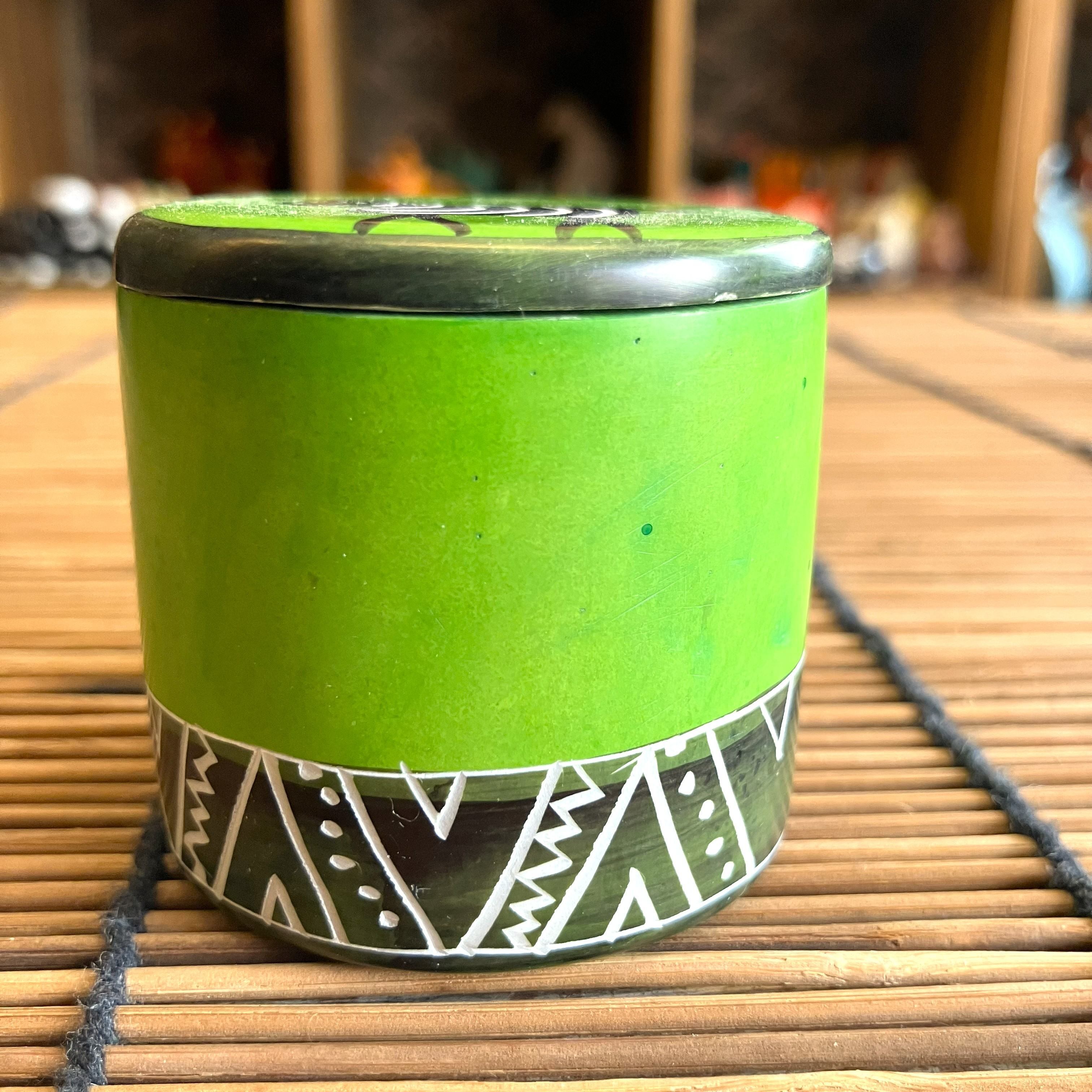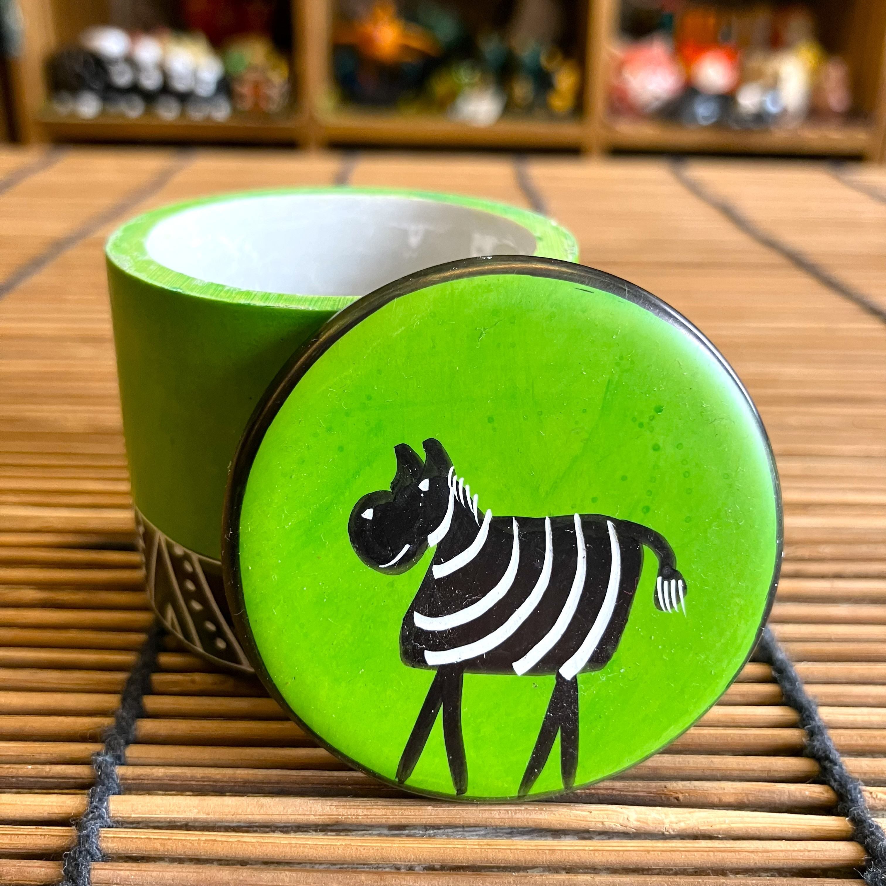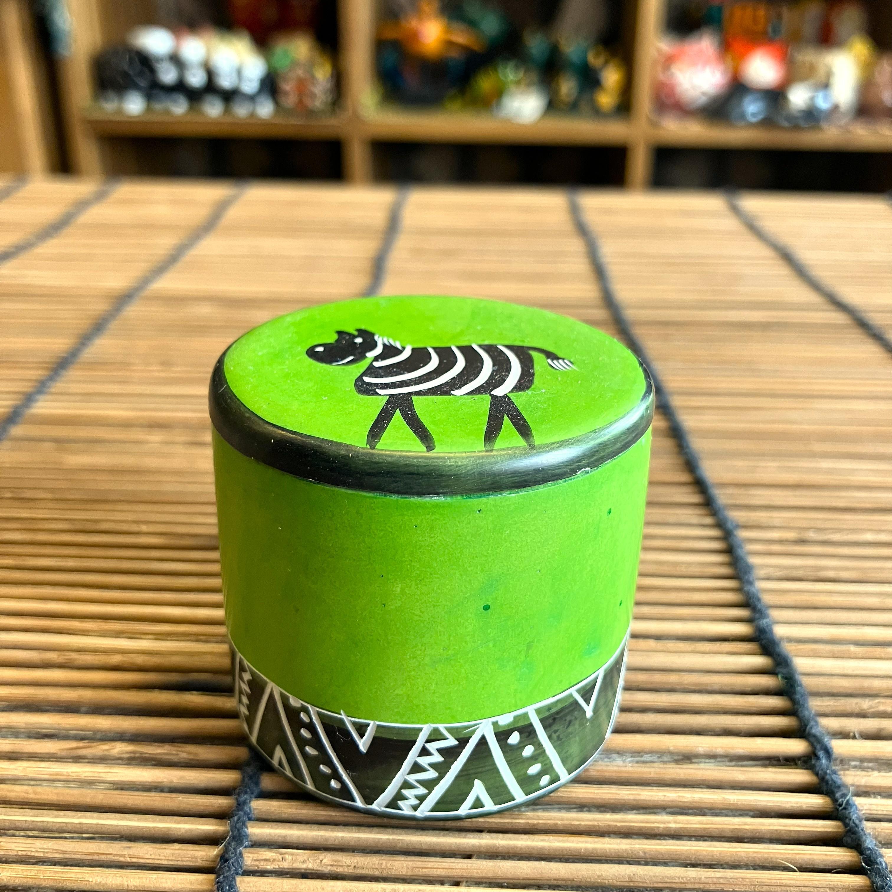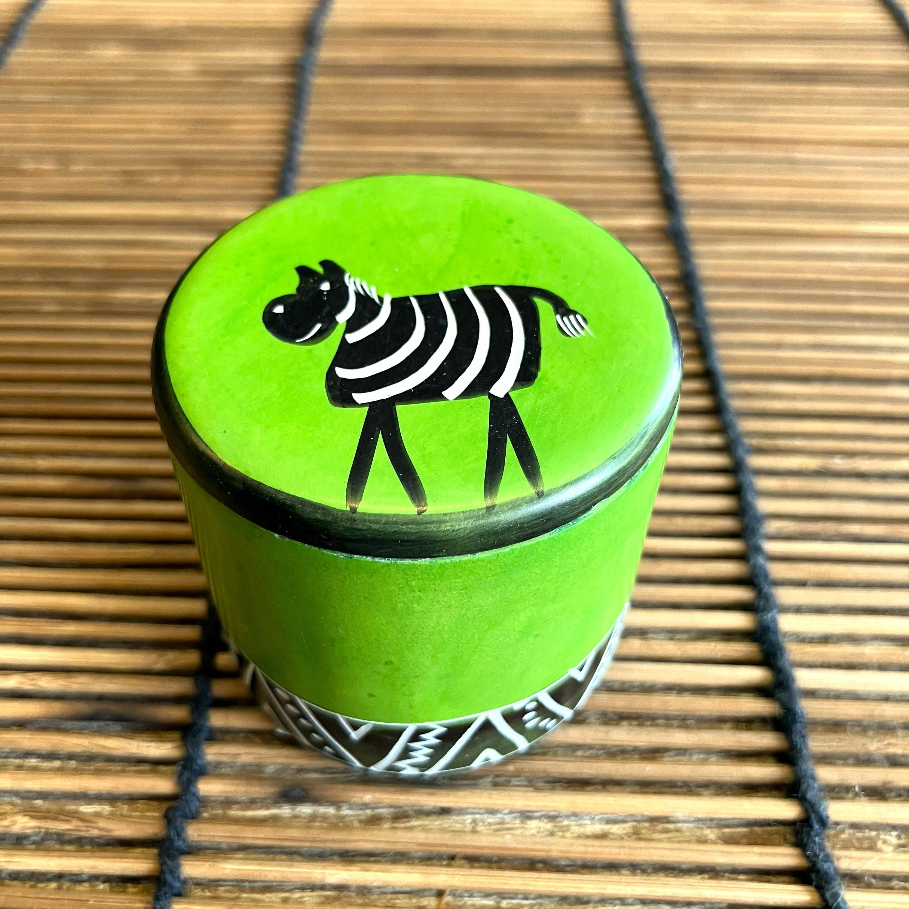 BOX 円形 ミニ 小物入れ 小さい ソープストーン ケニア シマウマE グリーン インテリア 置物