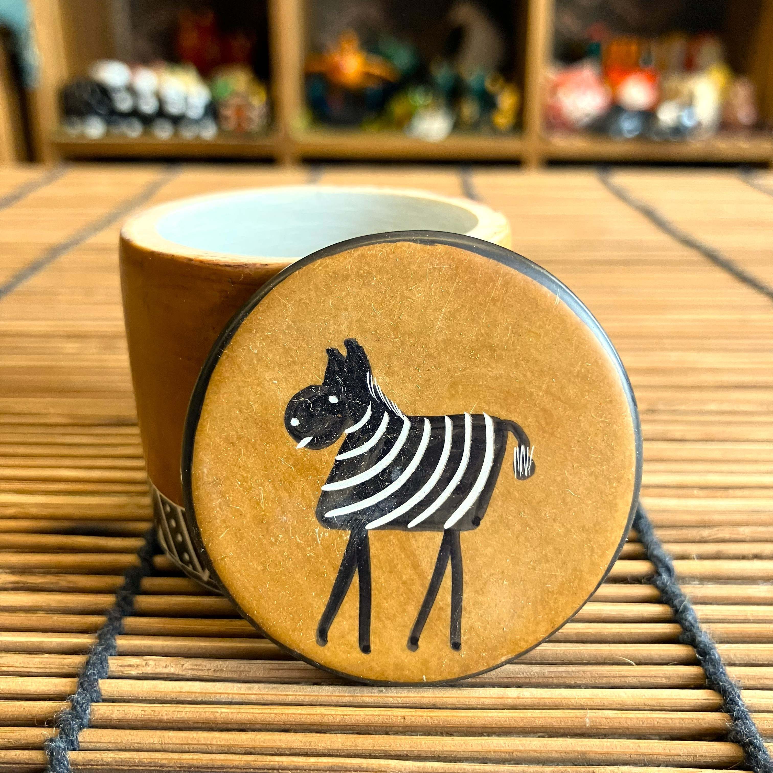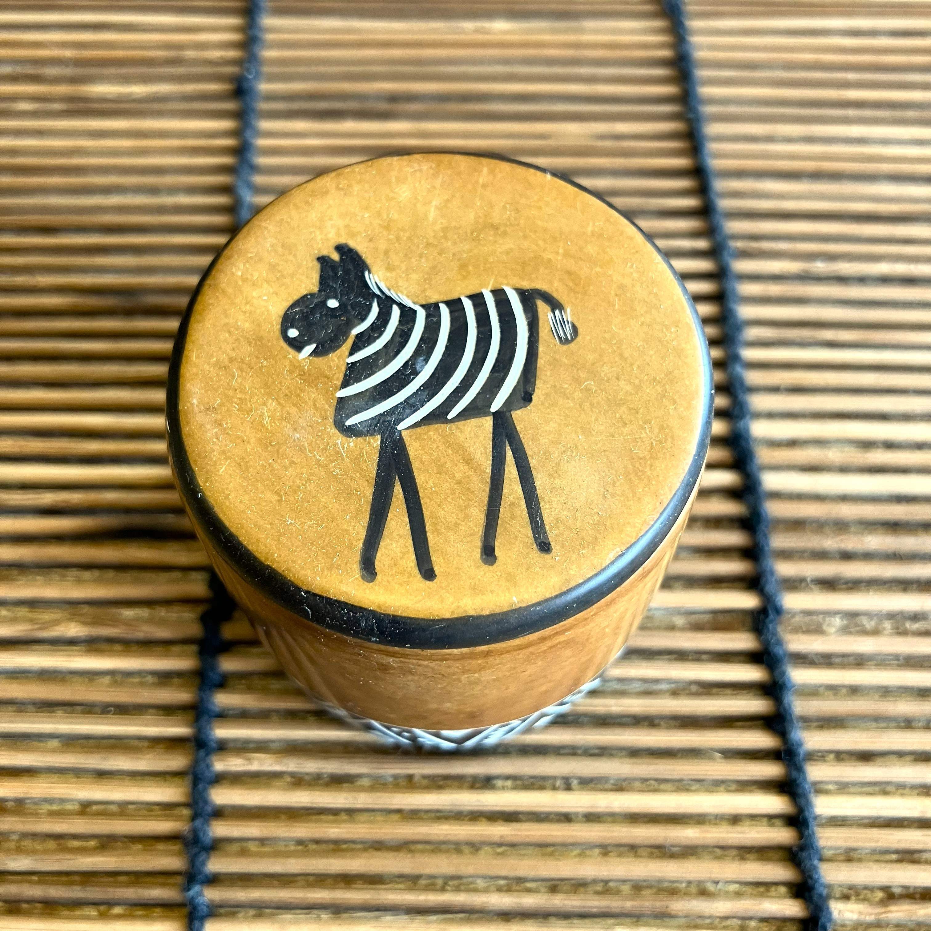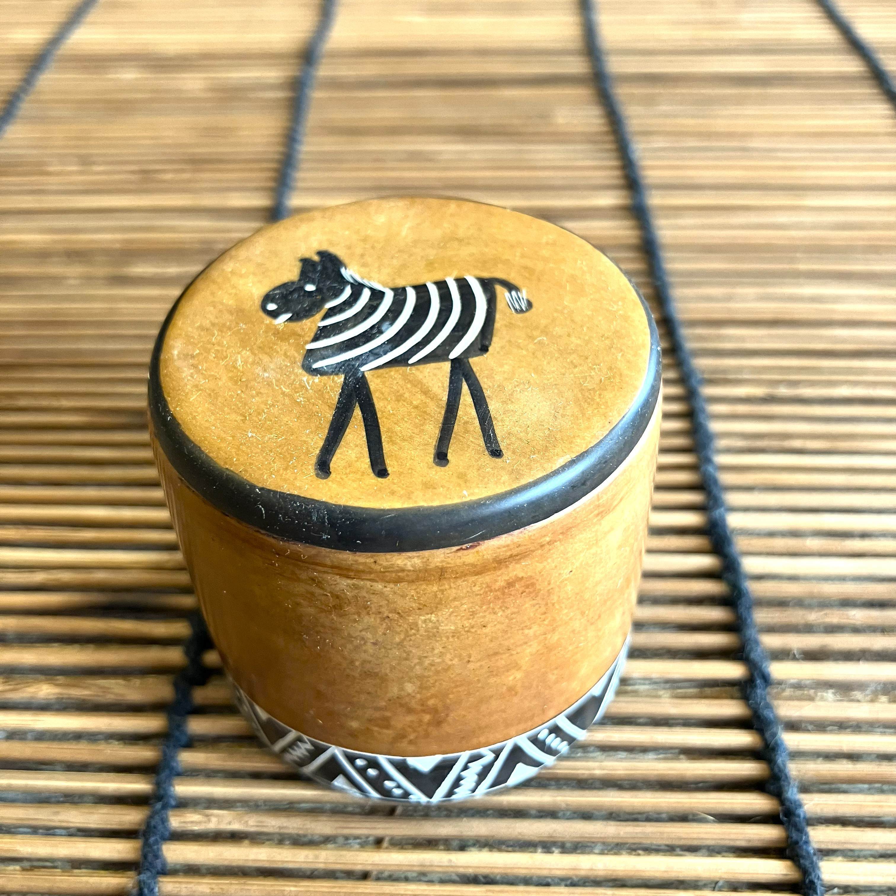 BOX 円形 ミニ 小物入れ 小さい ソープストーン ケニア シマウマF ブラウン インテリア 置物