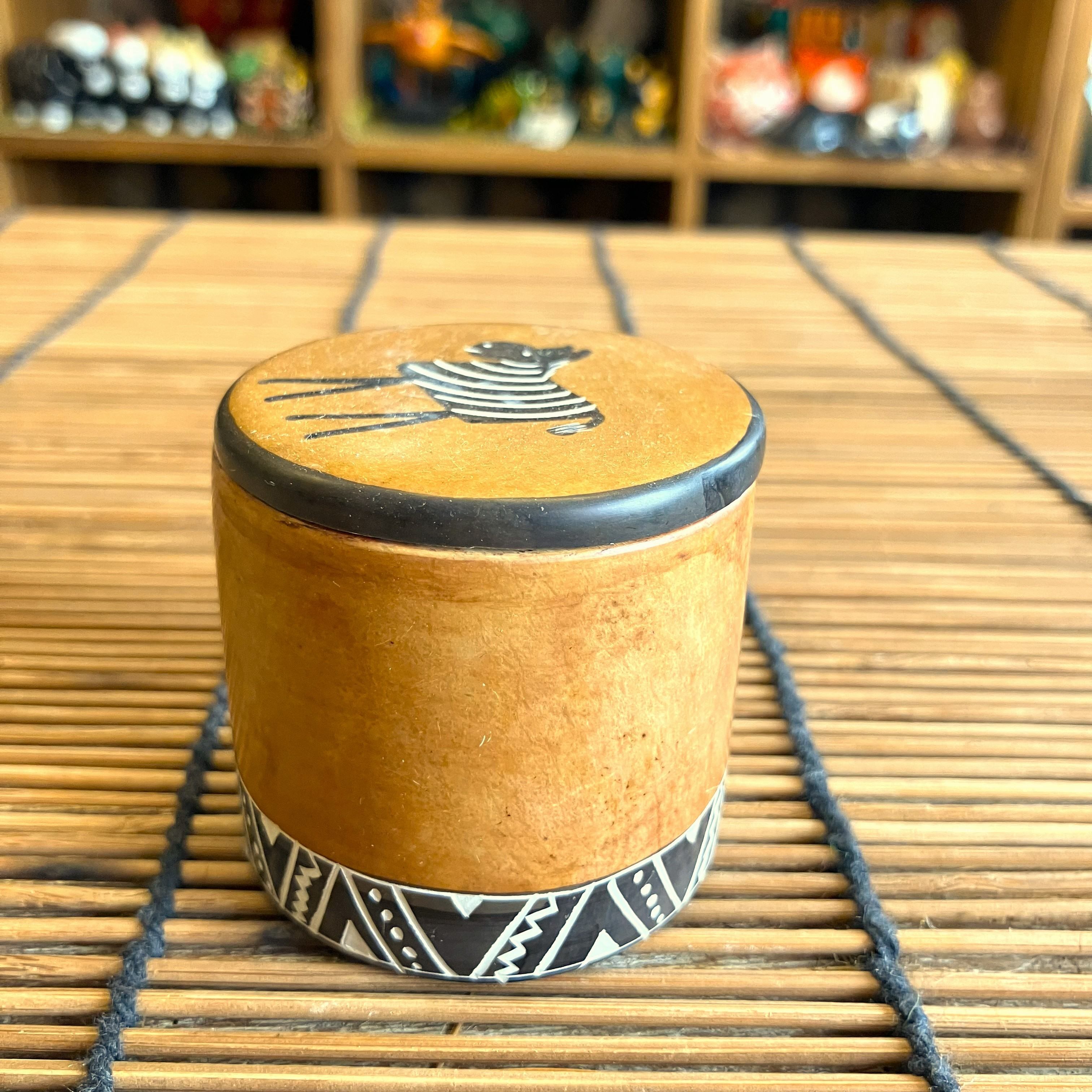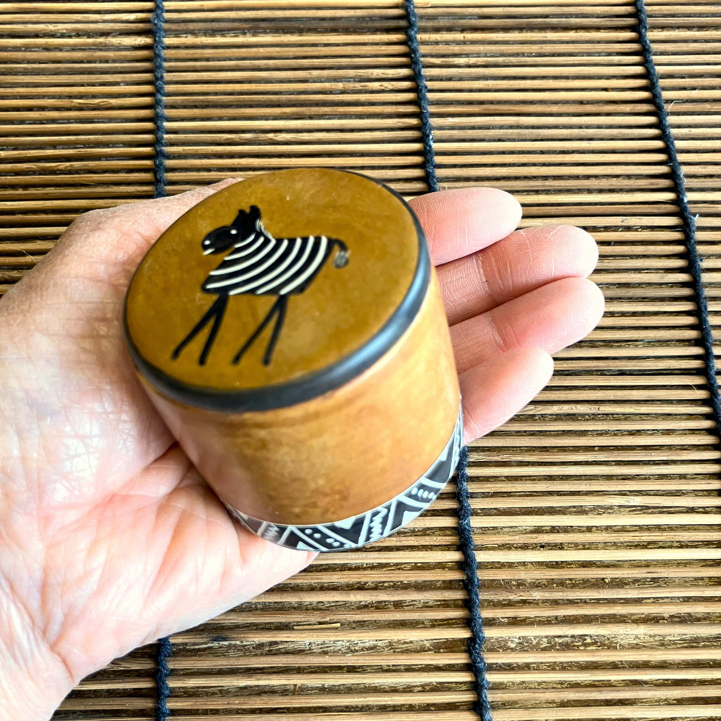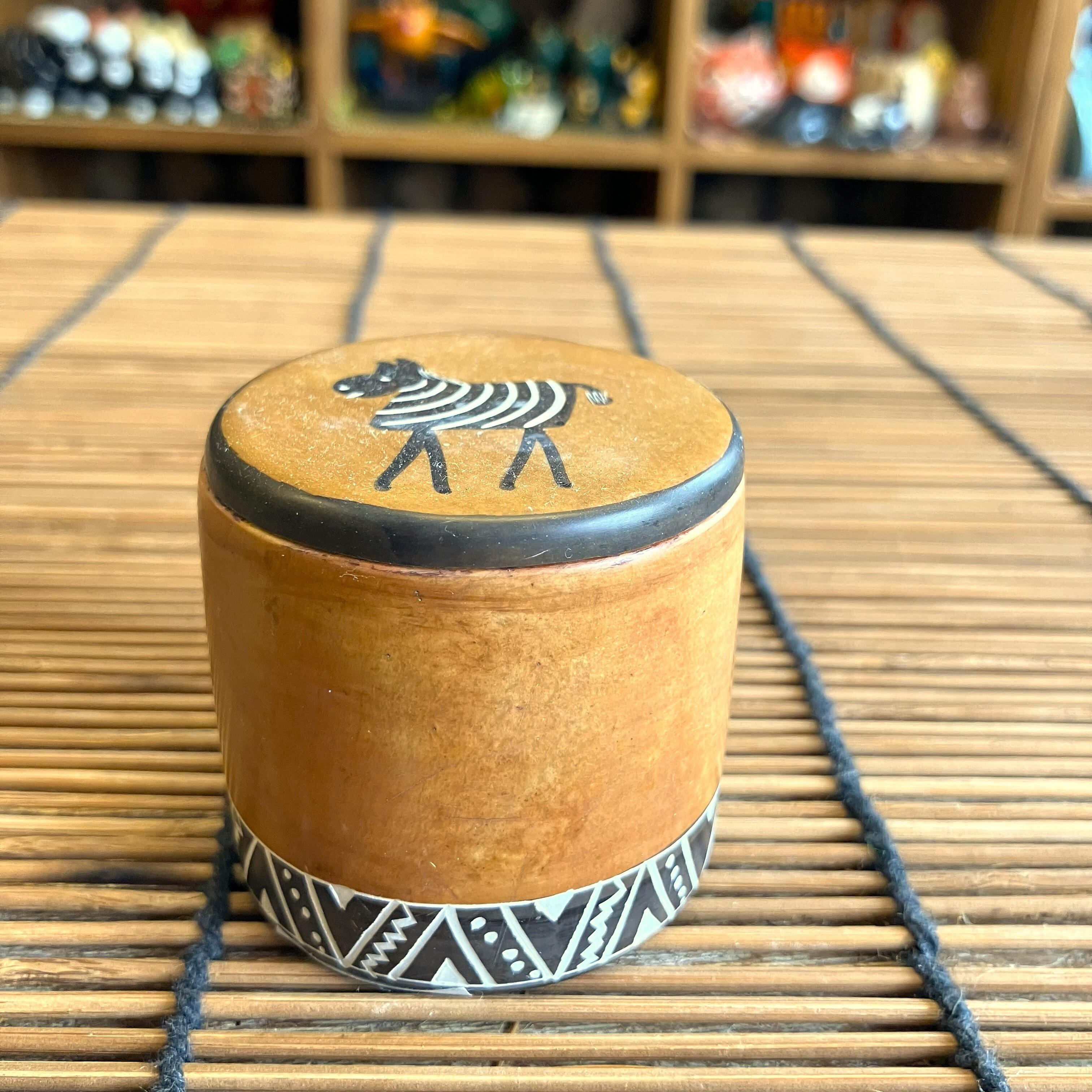 BOX 円形 ミニ 小物入れ 小さい ソープストーン ケニア シマウマF ブラウン インテリア 置物