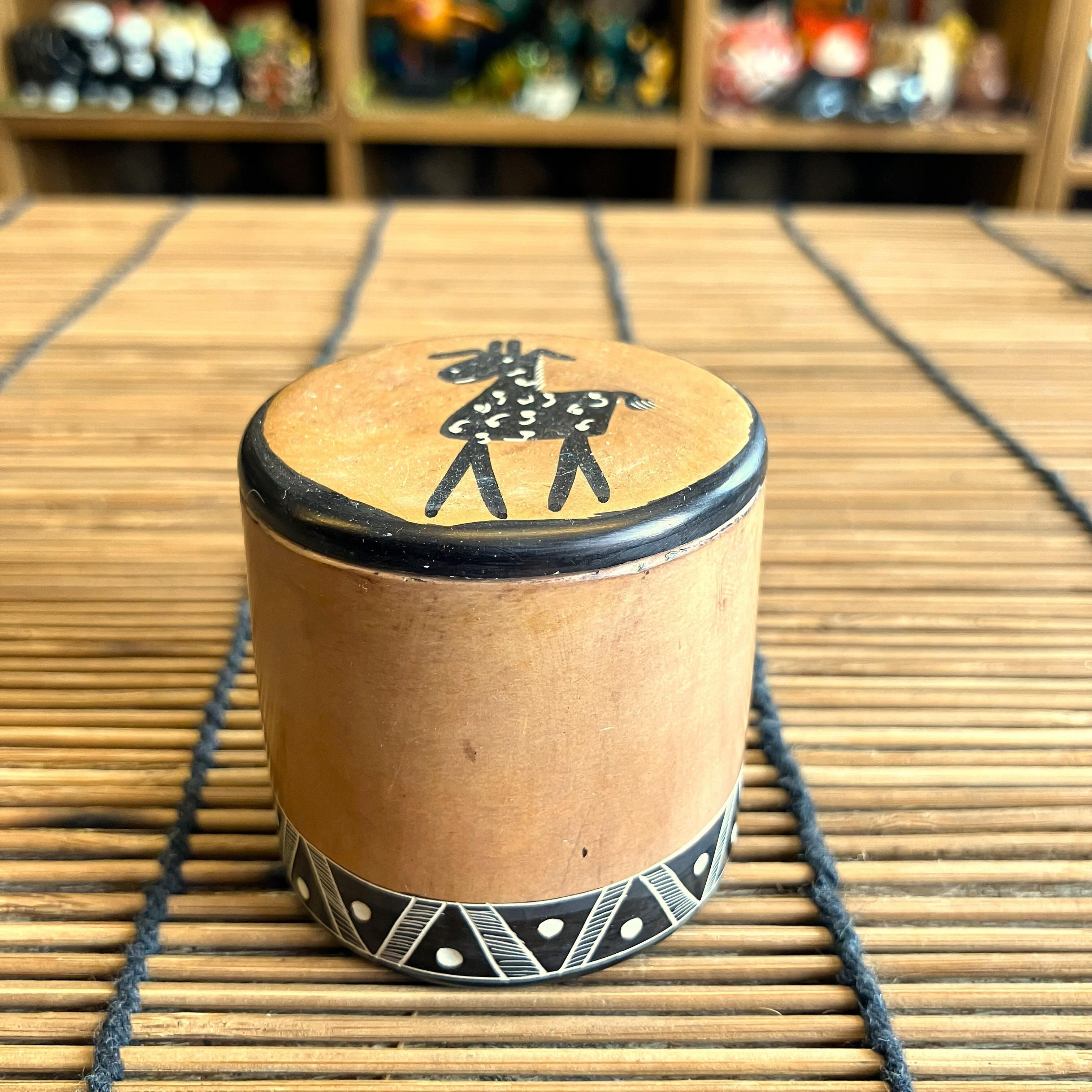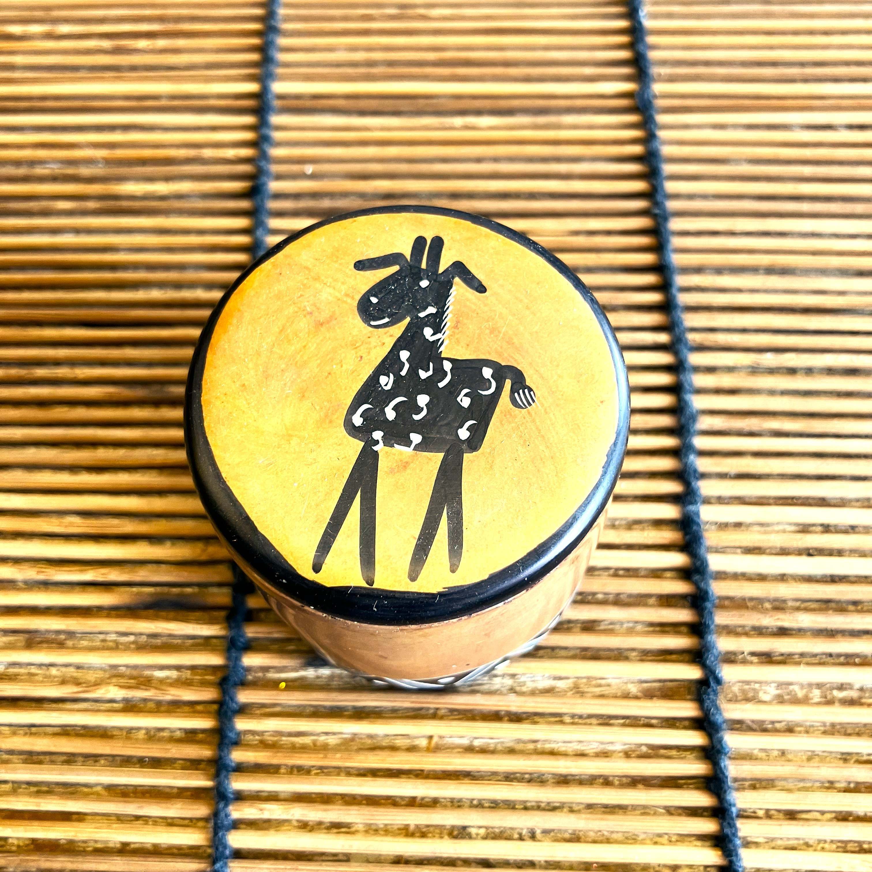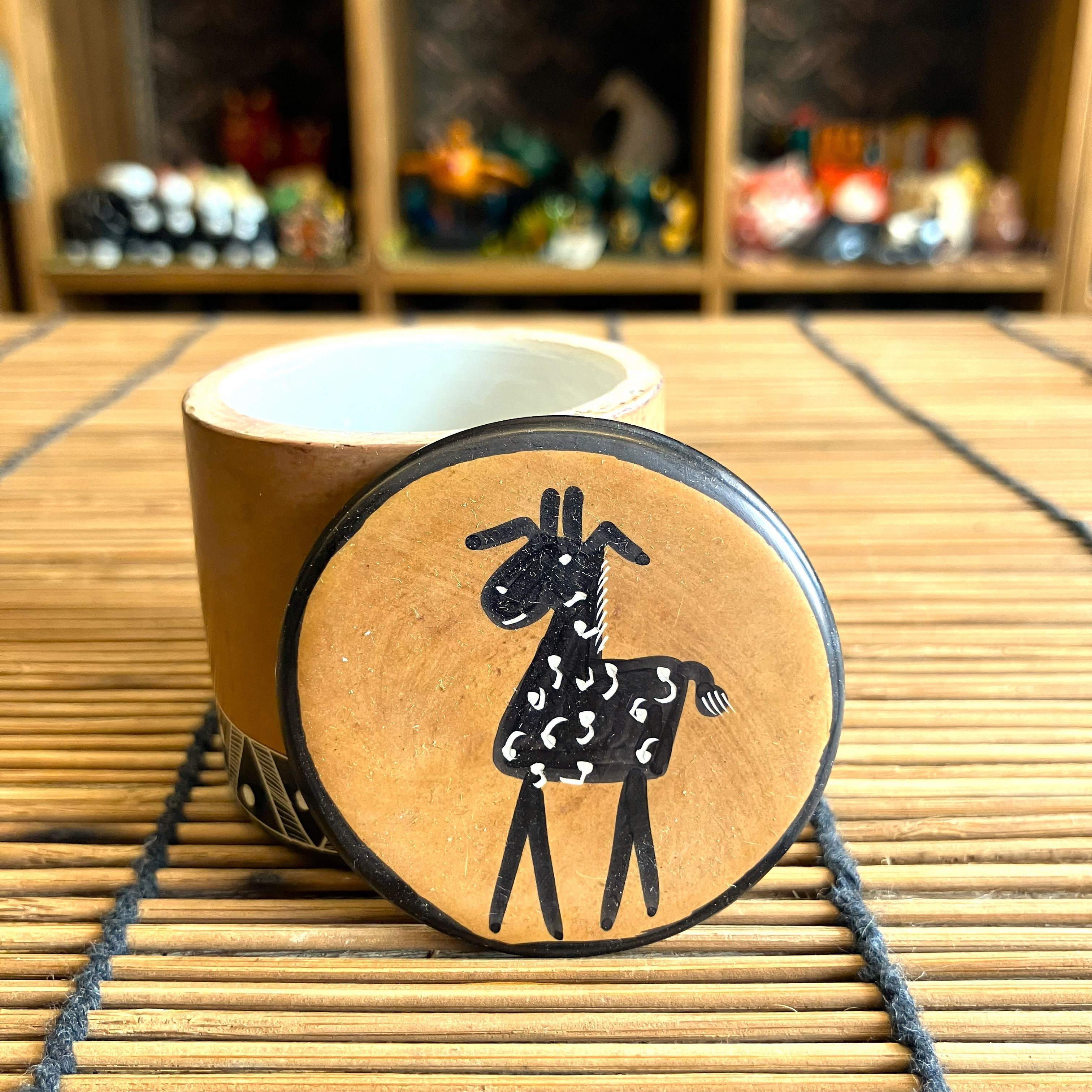 BOX 円形 ミニ 小物入れ 小さい ソープストーン ケニア キリンG ブラウン インテリア 置物