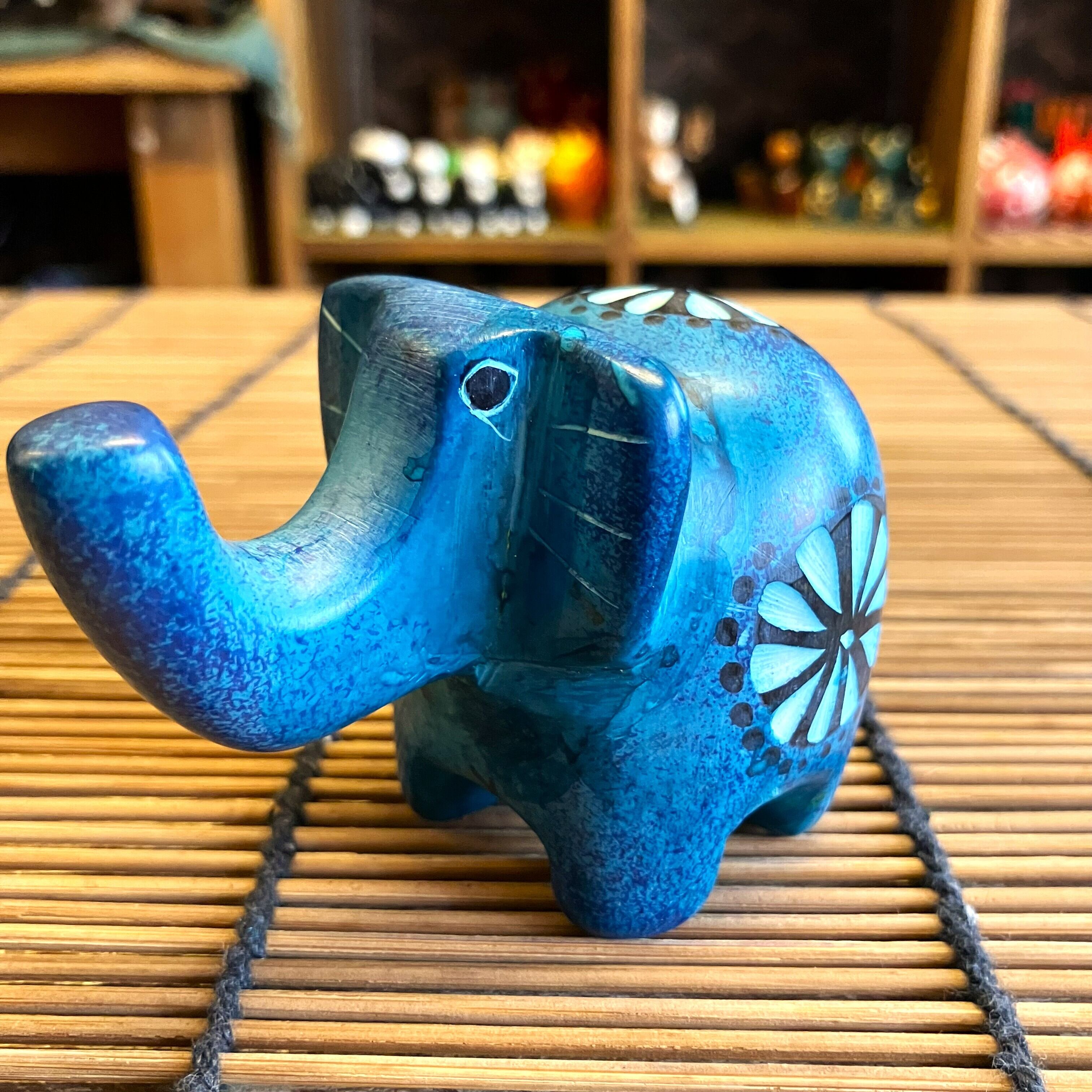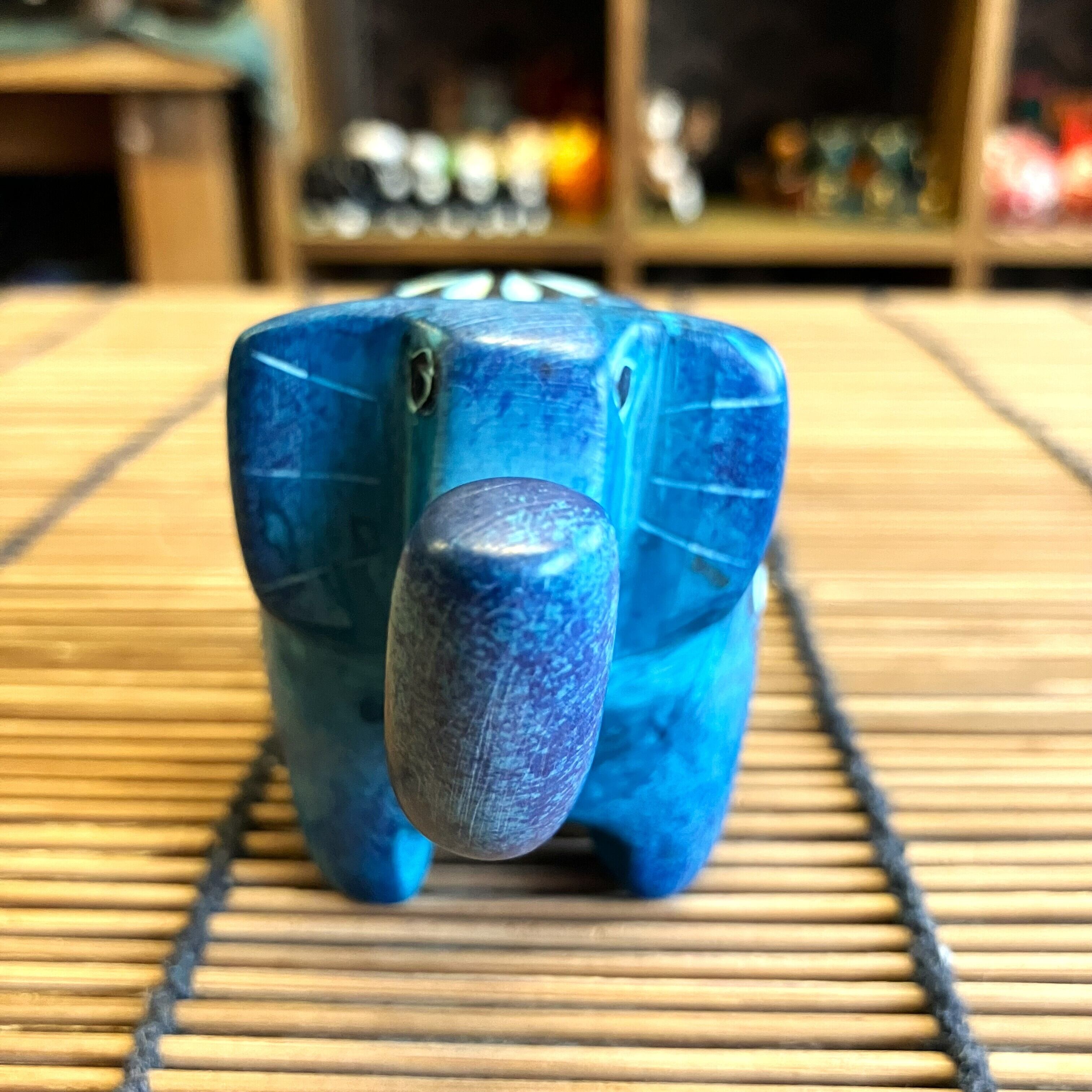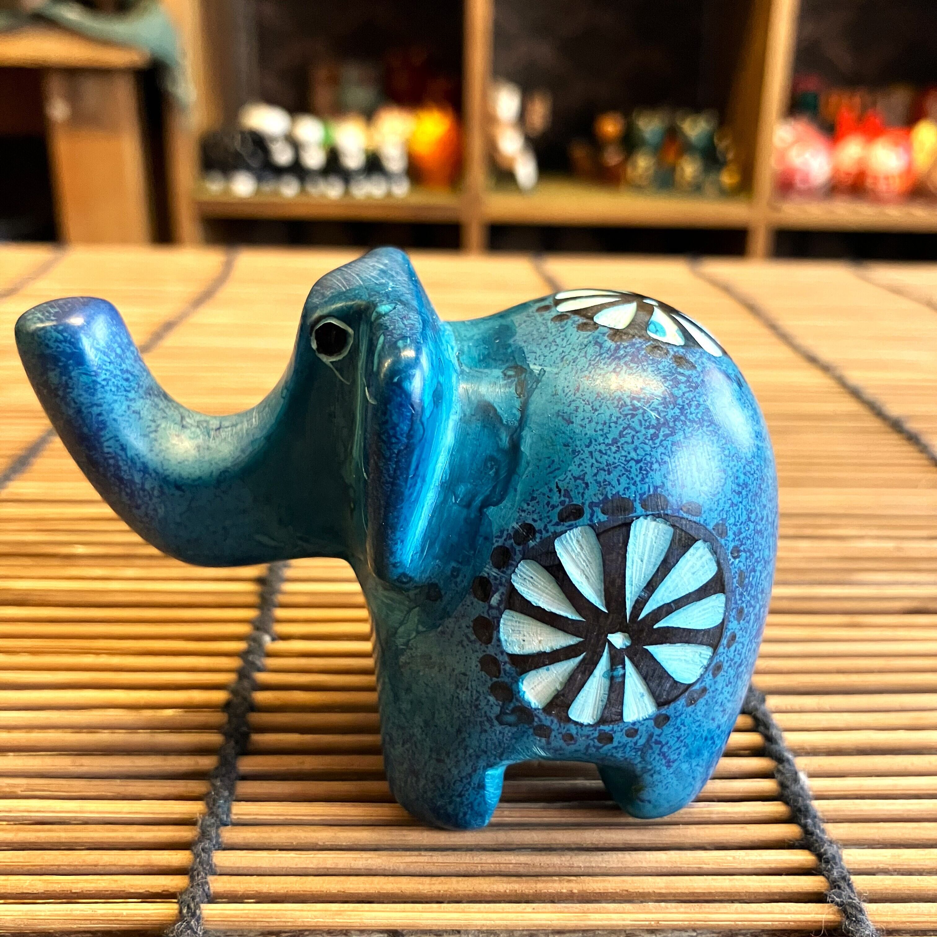 ゾウ 象 置物 オブジェ ライトブルー ソープストーン 動物 アニマル ケニア インテリア雑貨