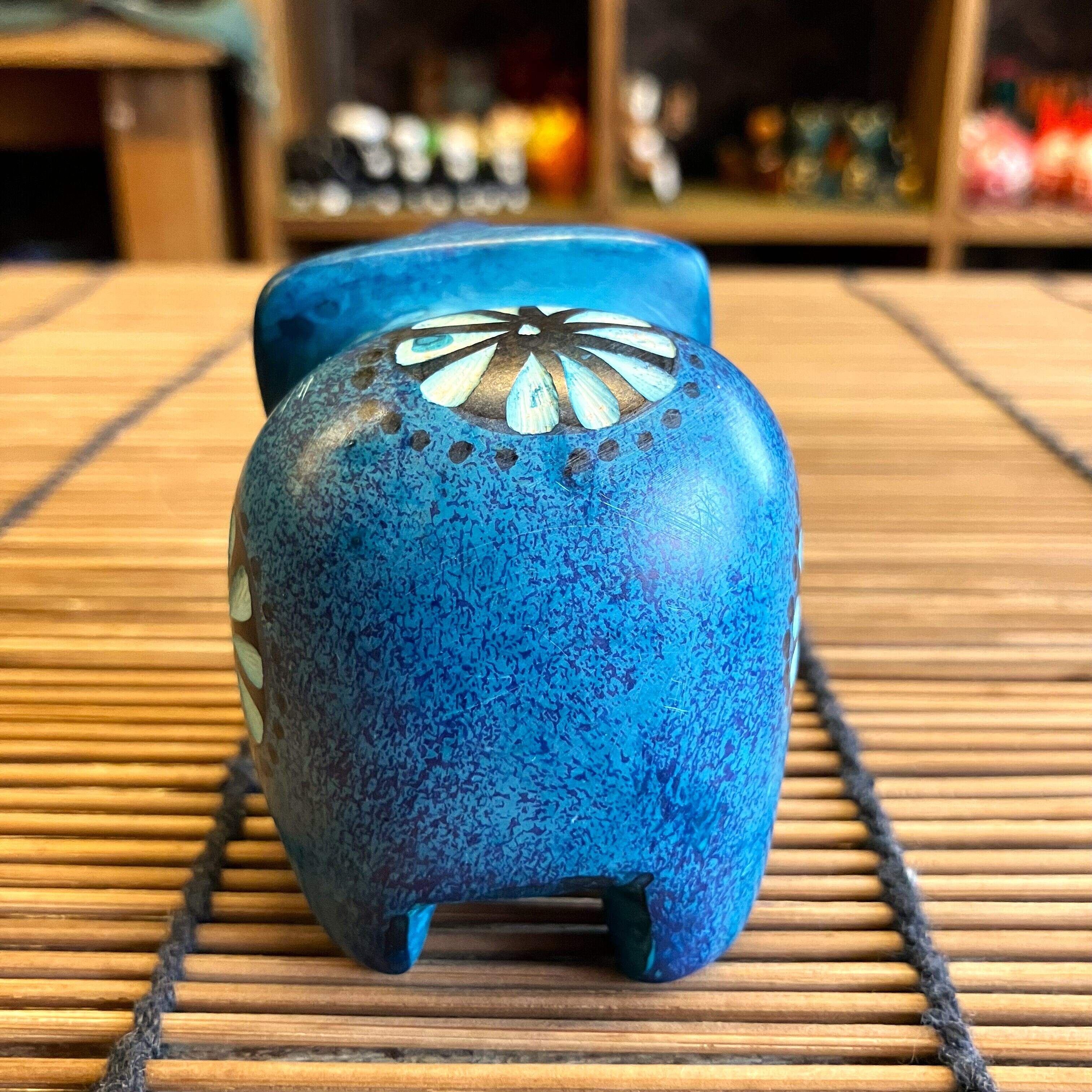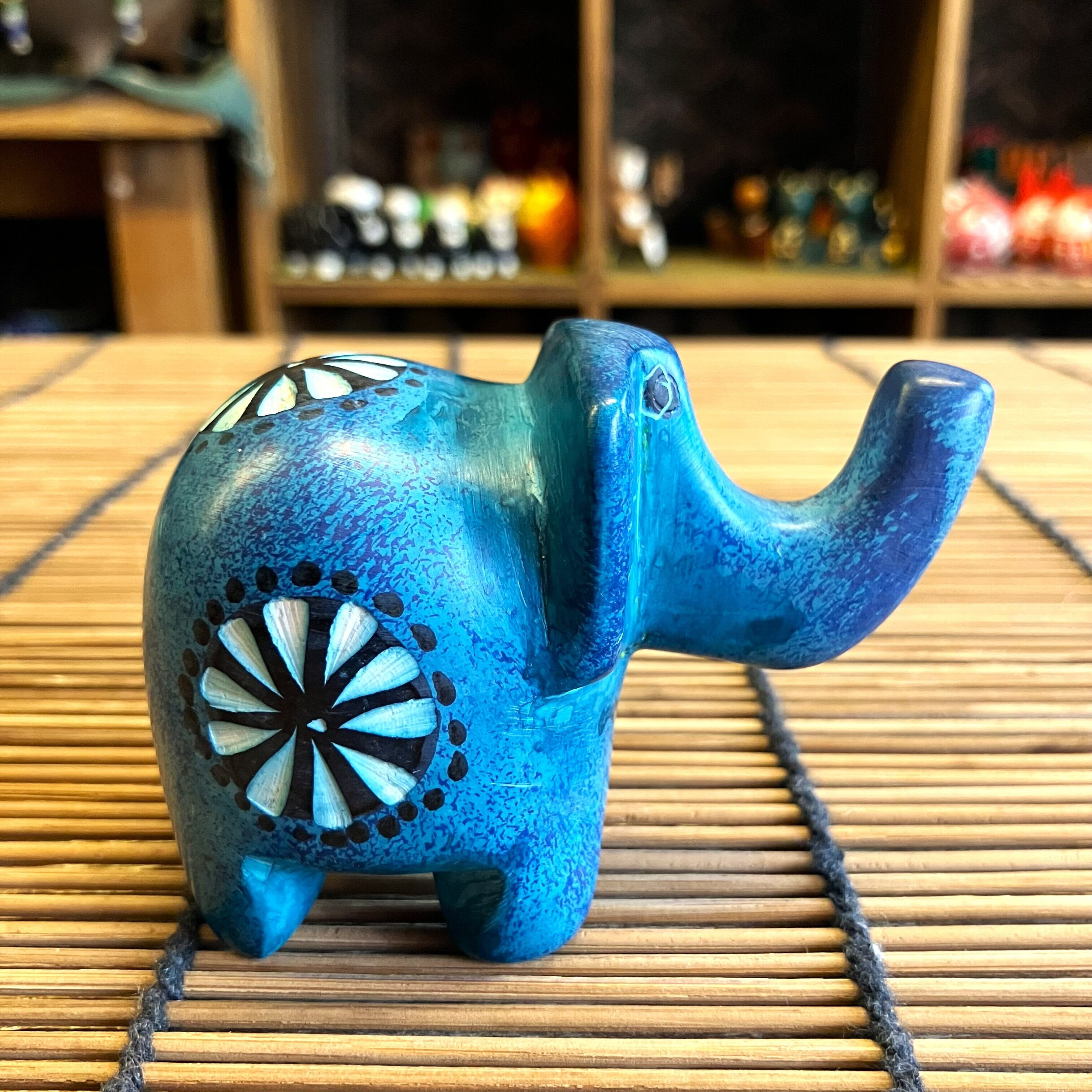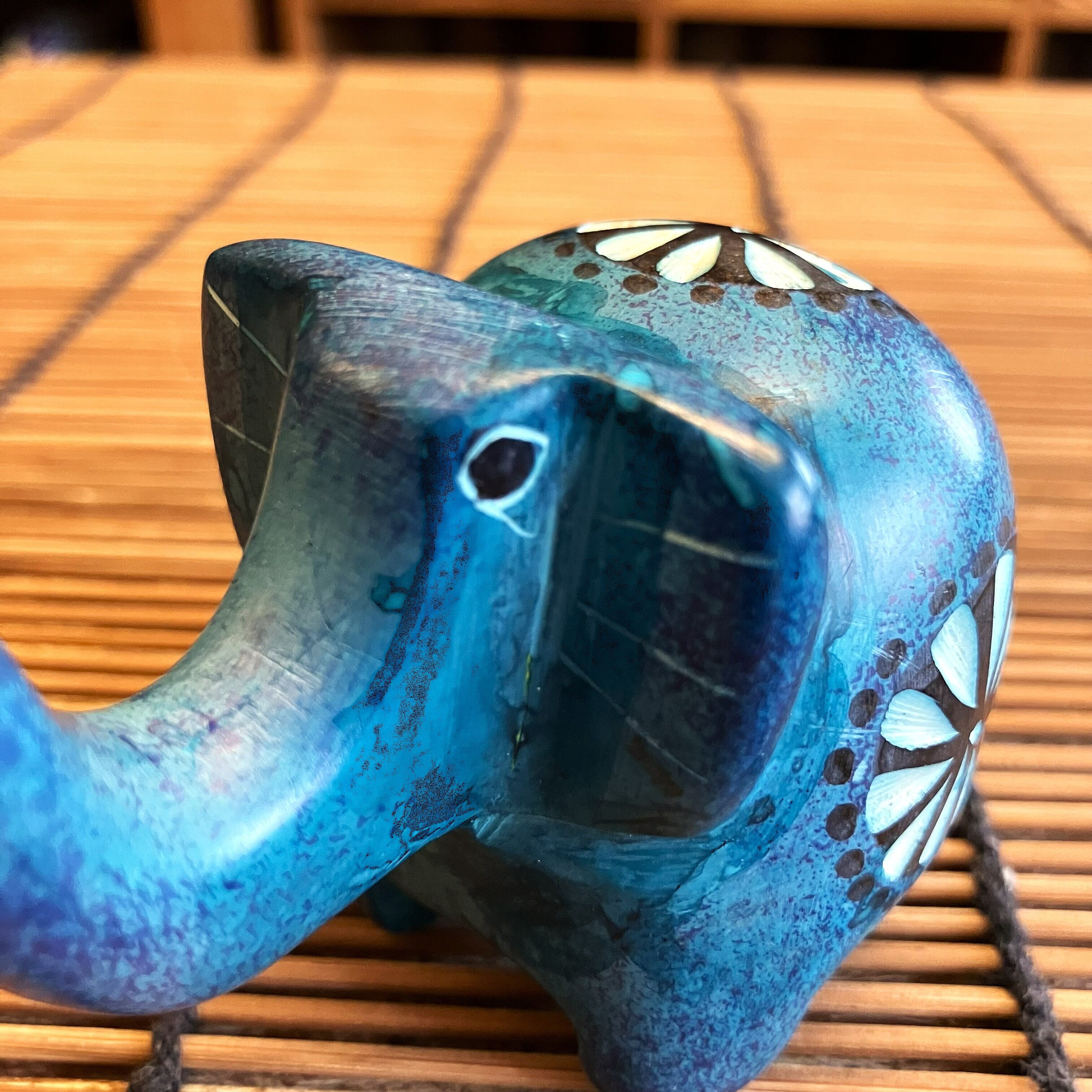 ゾウ 象 置物 オブジェ ライトブルー ソープストーン 動物 アニマル ケニア インテリア雑貨
