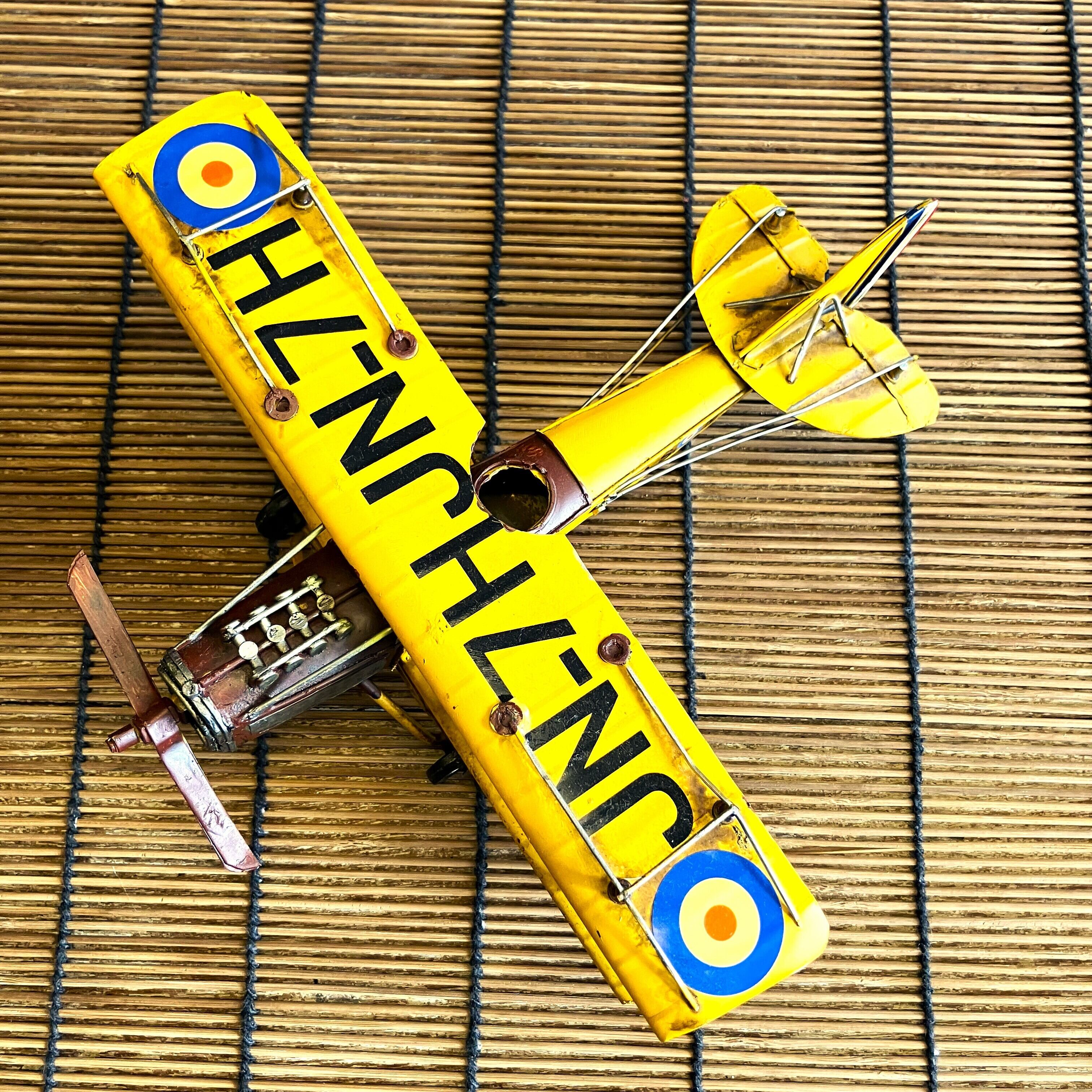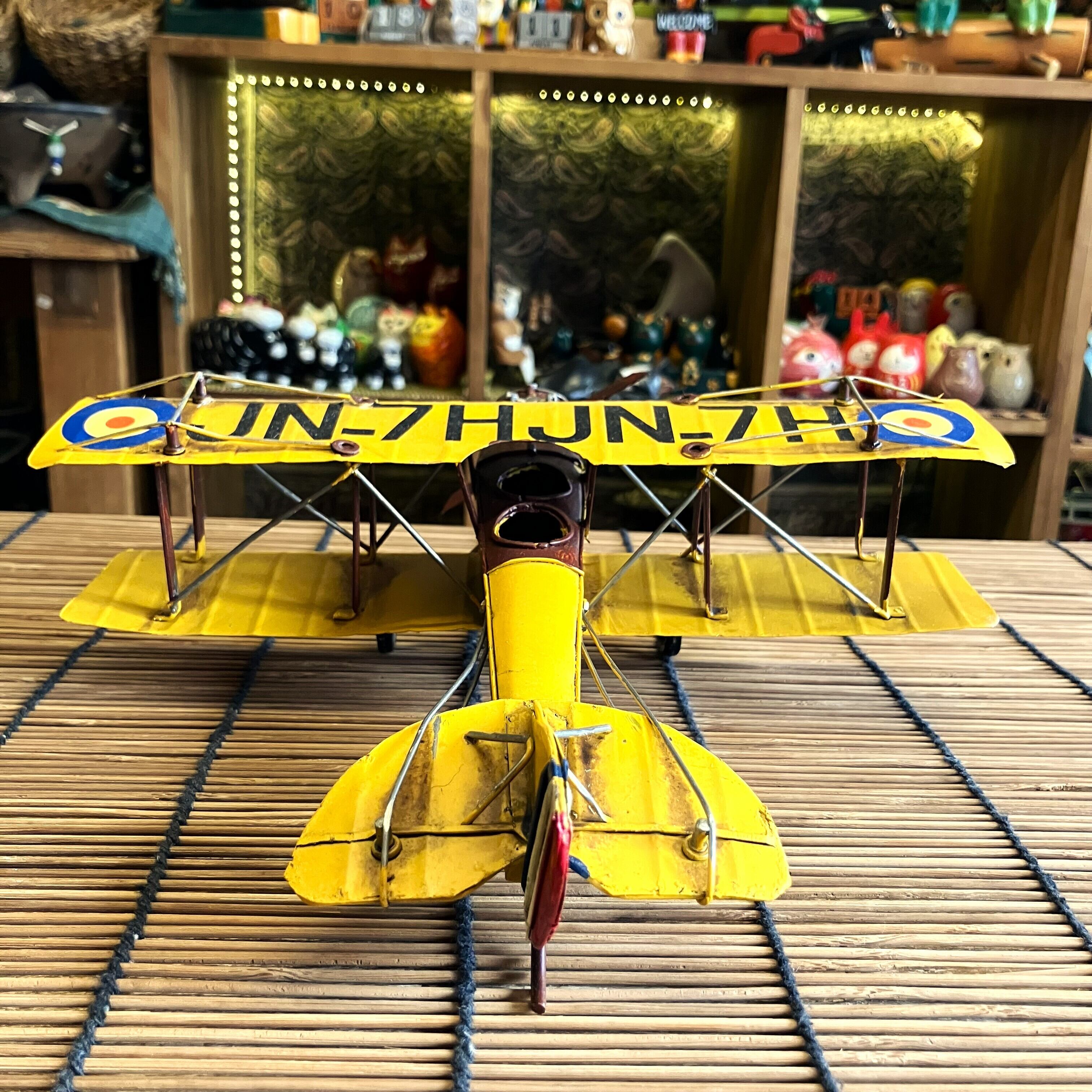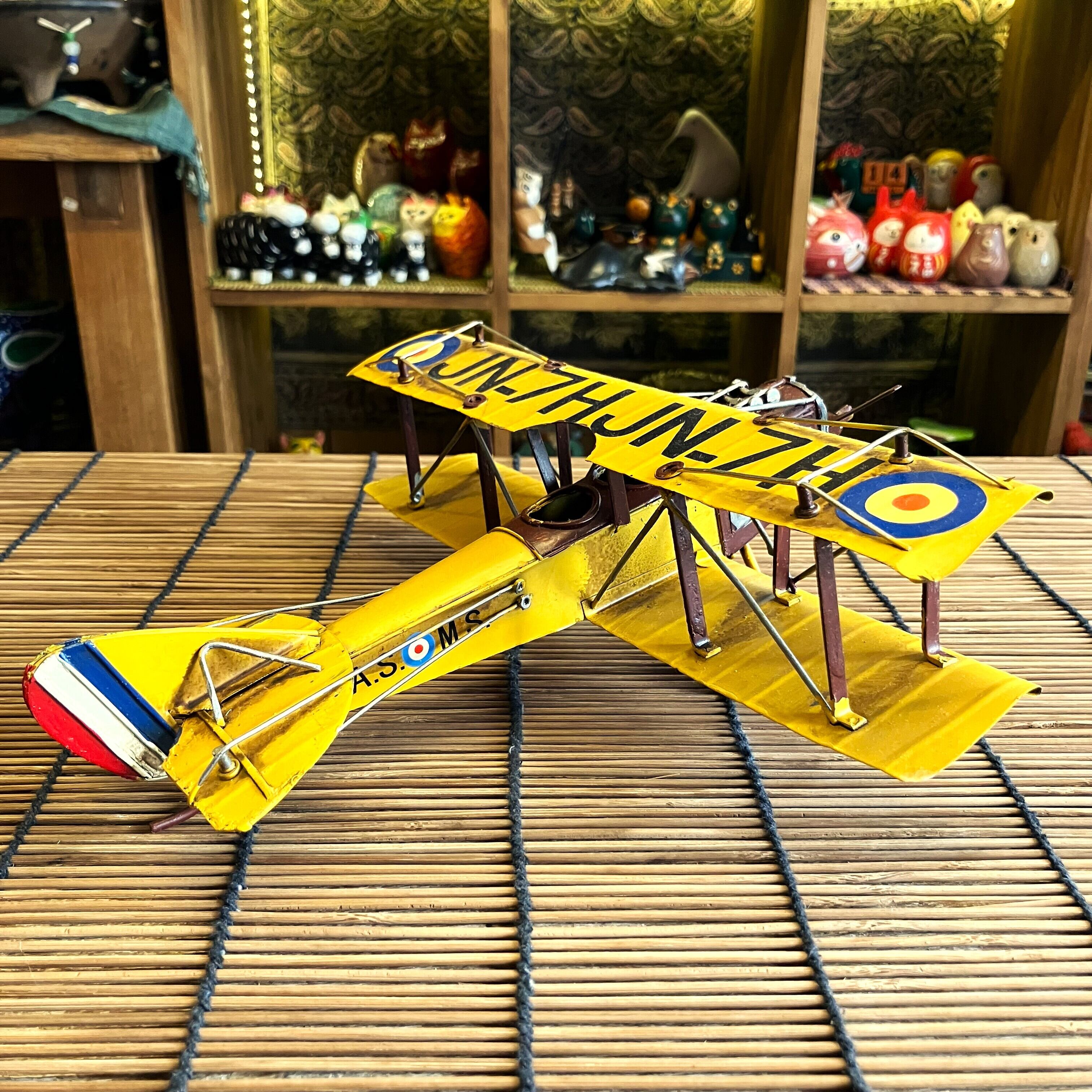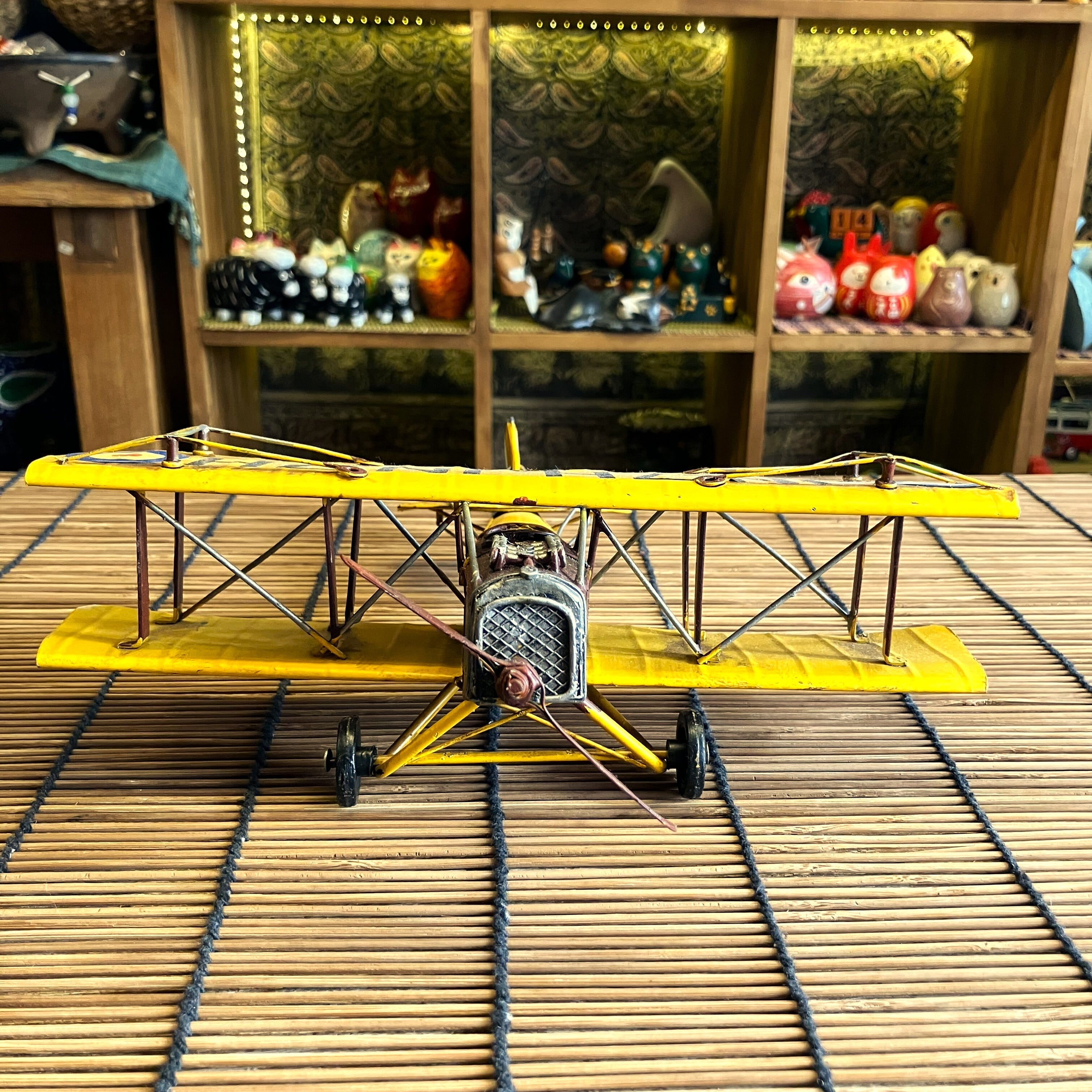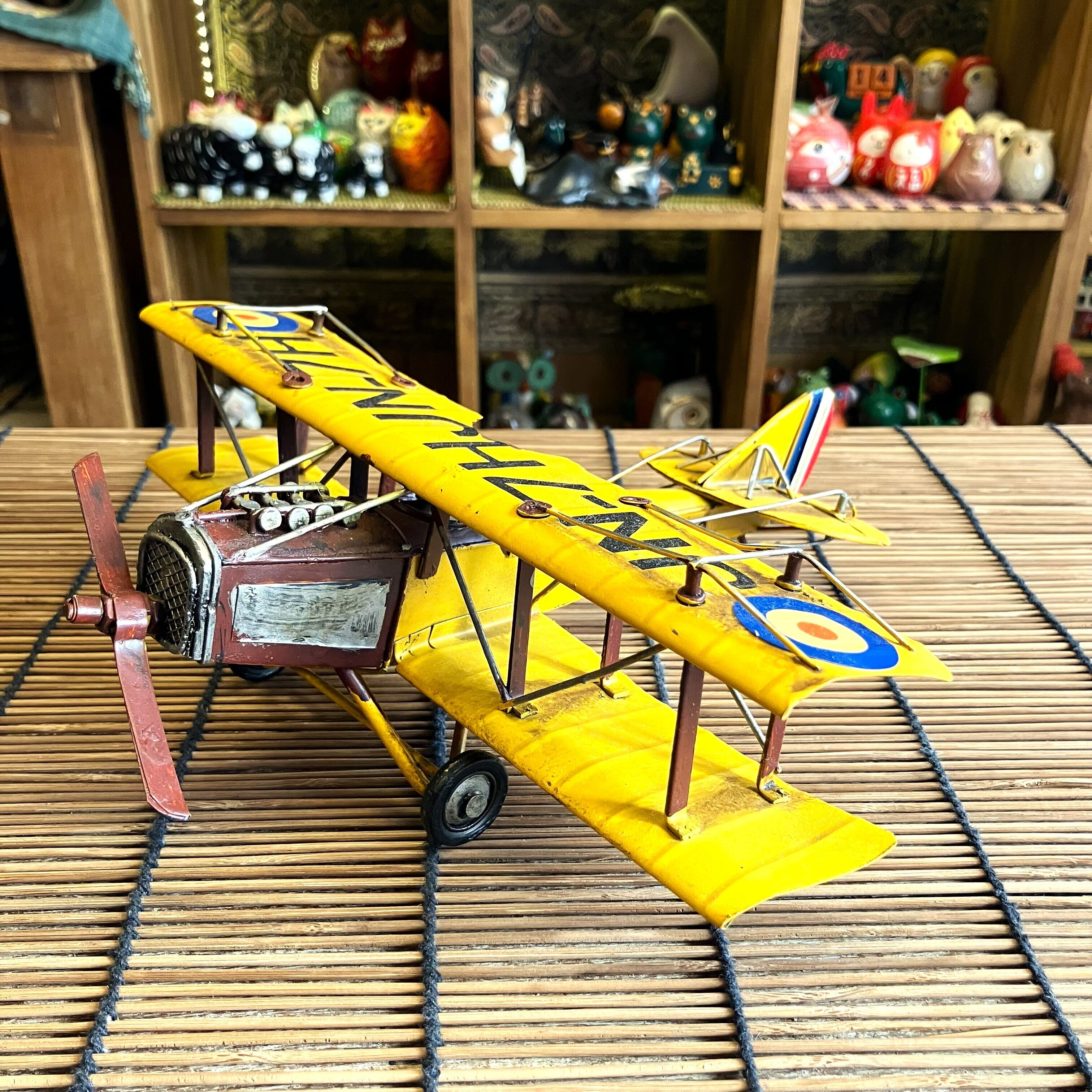 ブリキ 置物 飛行機 プロペラ機 複葉機 イエロー レトロ オブジェ アメリカン雑貨 お洒落 可愛い インテリア雑貨
